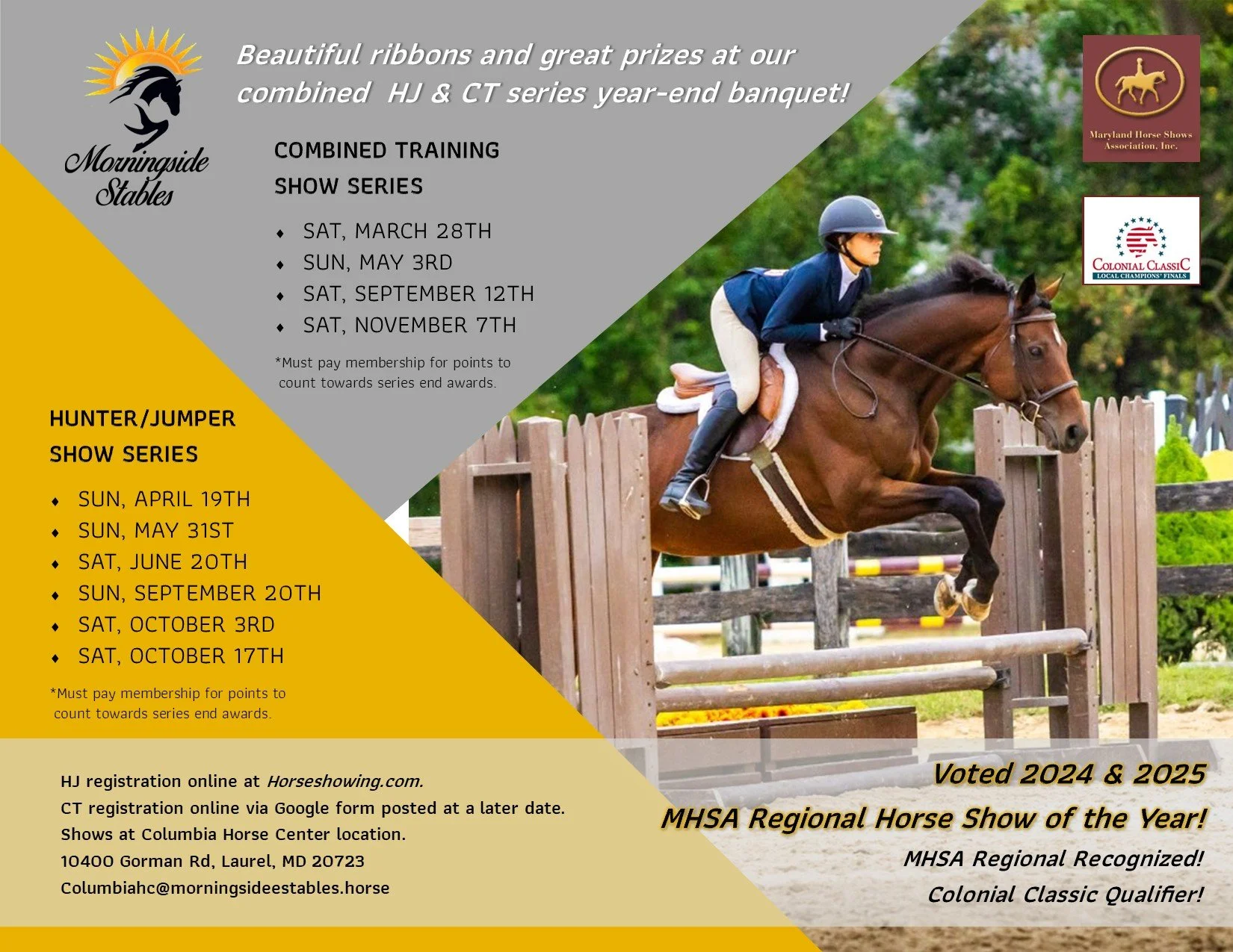 Morningside Stables is happy to announce our in-house Hunter/Jumper and Combined Training show series.